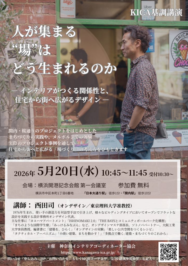 5月20日水曜日、KICA総会に併せて行われる基調講演として オンデザイン代表で東京理科大学准教授の西田司(おさむ)氏に 『人が集まる“場”はどう生まれるのか』というテーマでお話しいただきます。